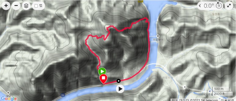 높이는 654m. 집에서 95km정도의 거리로 운전하고 다녀오기 전혀 부담없는 위치.