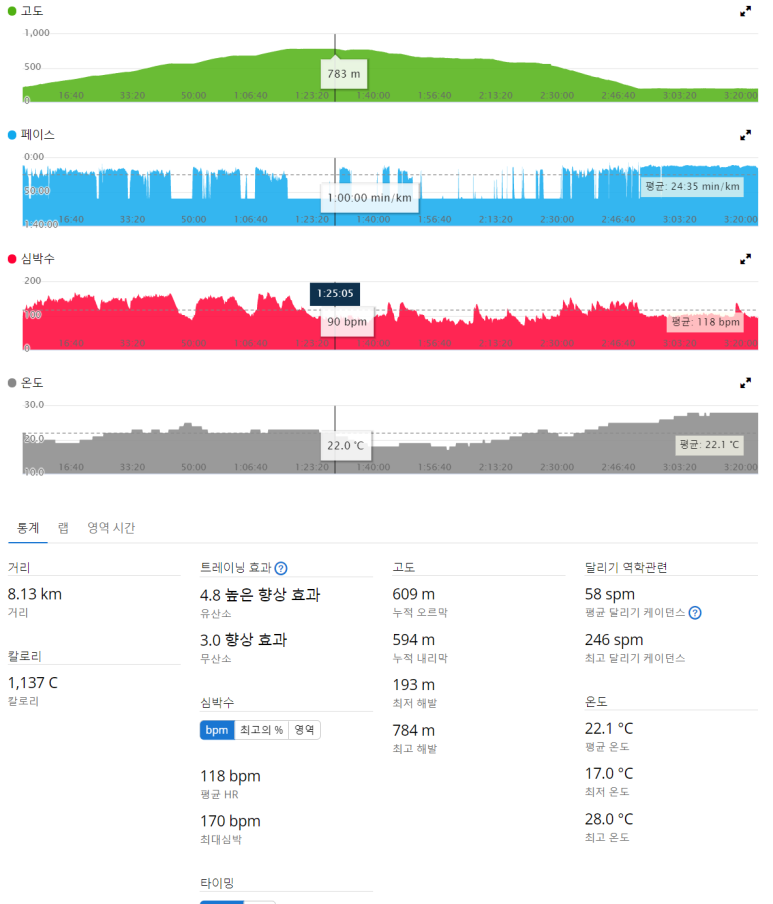 완만하게 올라갔는데도 심박 170bpm ㅋㅋ 살 너무 쪘다.