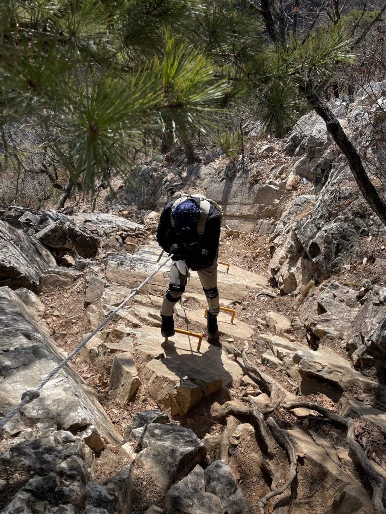 등선 폭포 반대편은 완전암석 구간. 부모님께 여쭤보니 예전에는 밧줄도 잘 안되어 있었고,