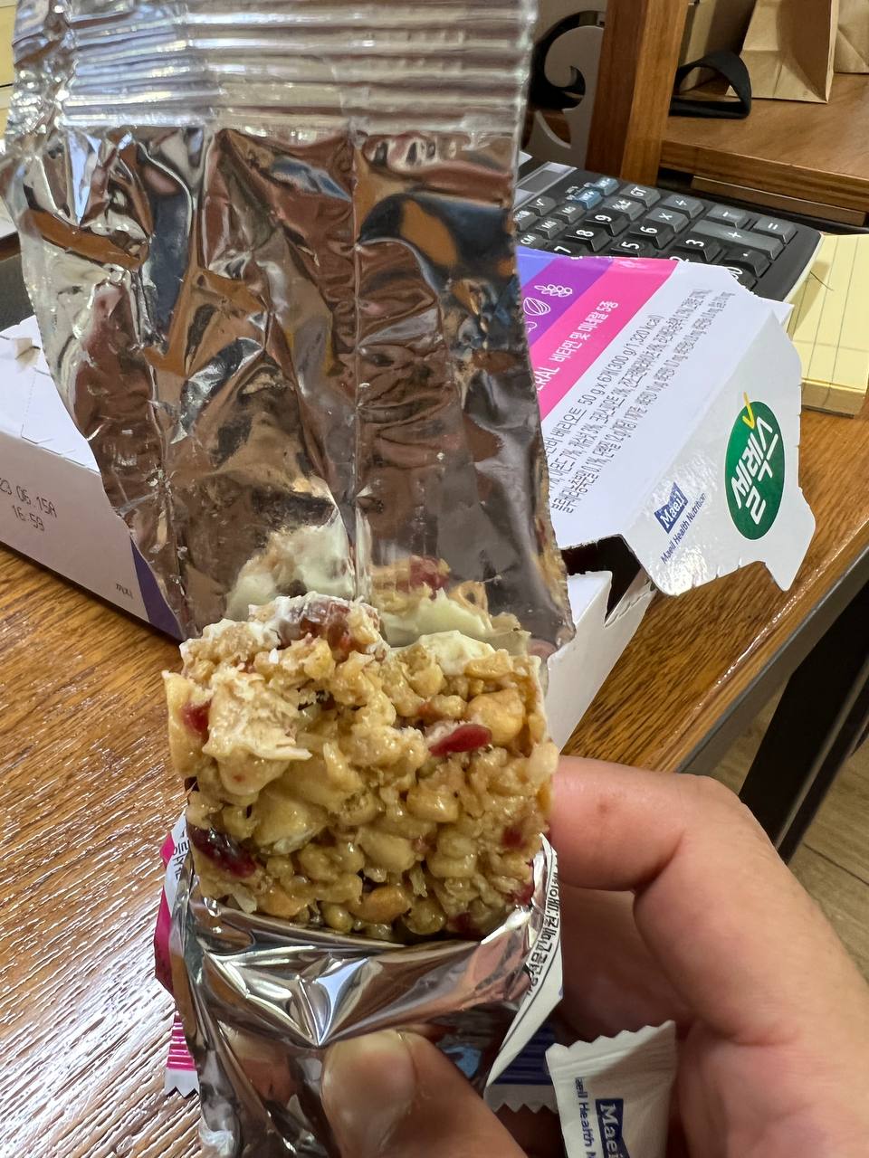 일단 뜯었을때 향이 아주 좋습니다. 단백질바 수도 없이 많이 먹어봤지만 뜯고 바로 향이 이렇게 좋은건 첨 봤어요.