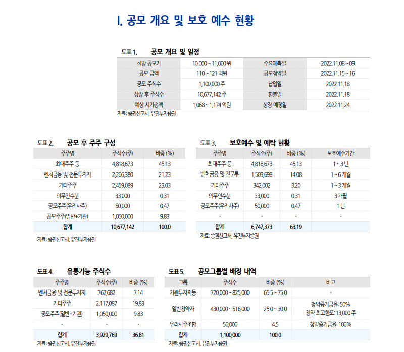 ☞ 공모가는 2022년 PER 기준 , 국내 동종업계 대비 19.2 ~ 26.6% 할인 수준