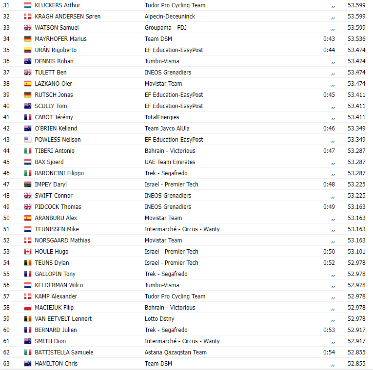 뚜르 드 스위스 Stage 2 경기결과 (0) | 2023.06.13 |
