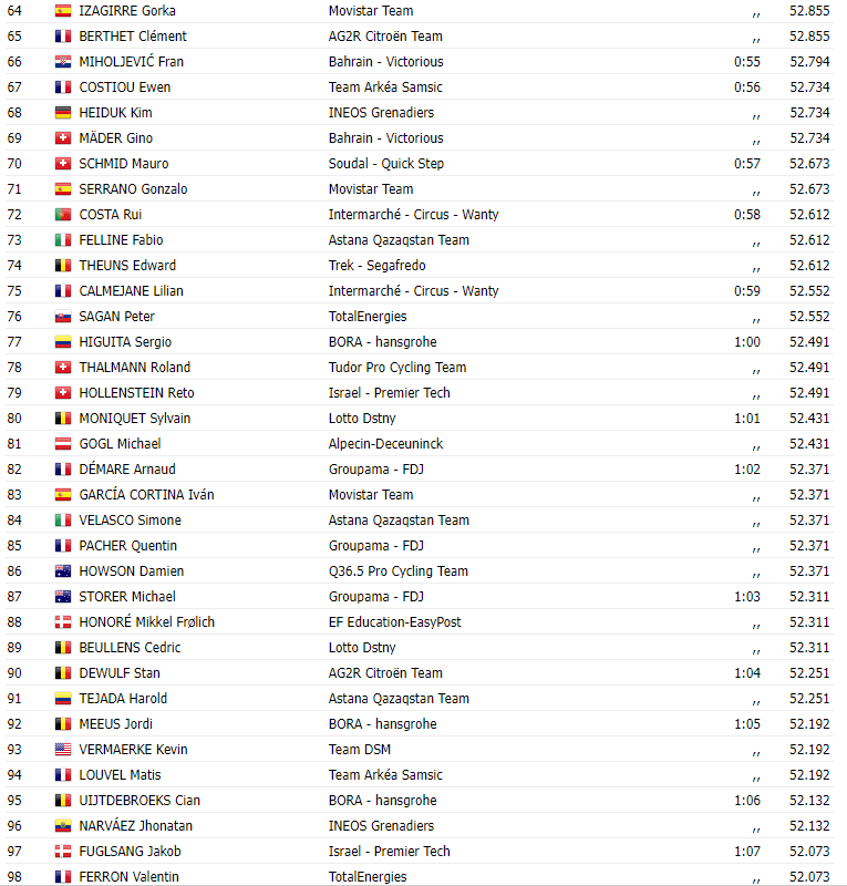 | 뚜르 드 스위스 Stage 2 경기결과 (0) | 2023.06.13 |