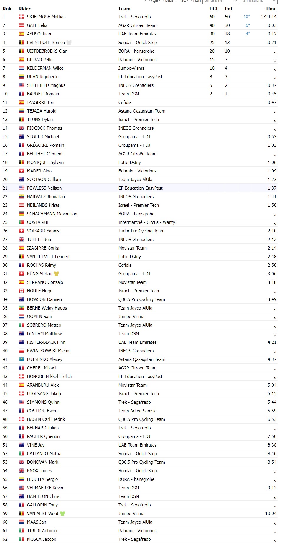 | 뚜르 드 스위스 Stage 2 경기결과 (0) | 2023.06.13 |