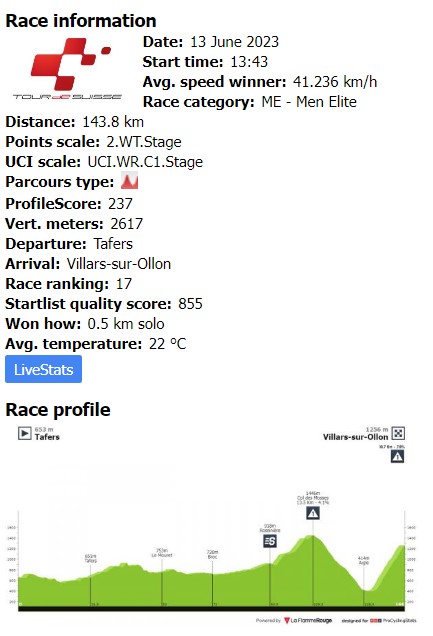 투르 드 스위스의 스테이지 3에서는 레이스가 산악으로 향합니다. 비야르 쉬르 올롱의 피니시는 종합 순위 경쟁에서 매우 중요하며 레이스의 초반 상황을 결정짓게 됩니다.