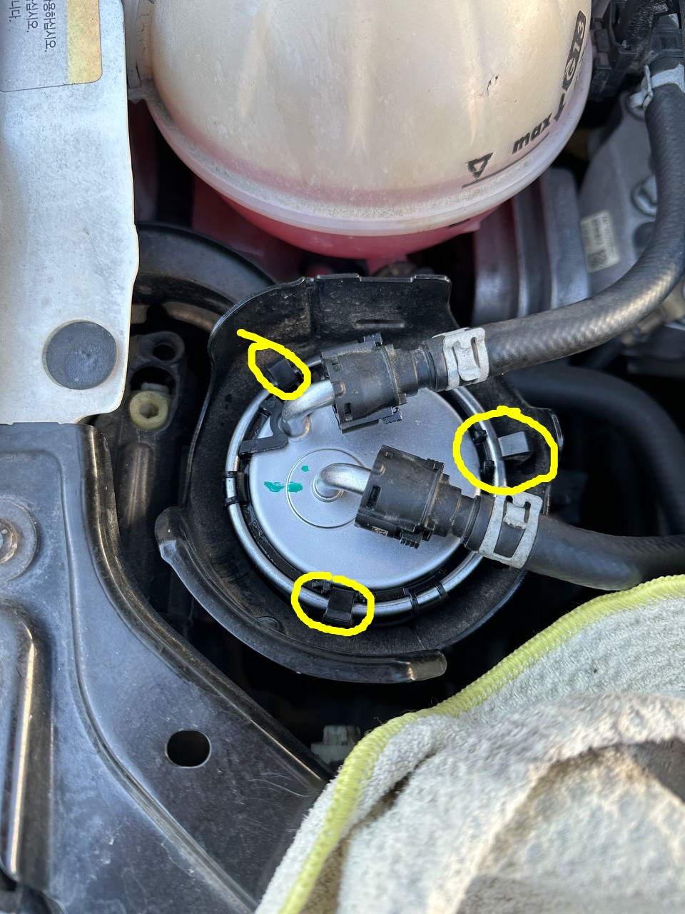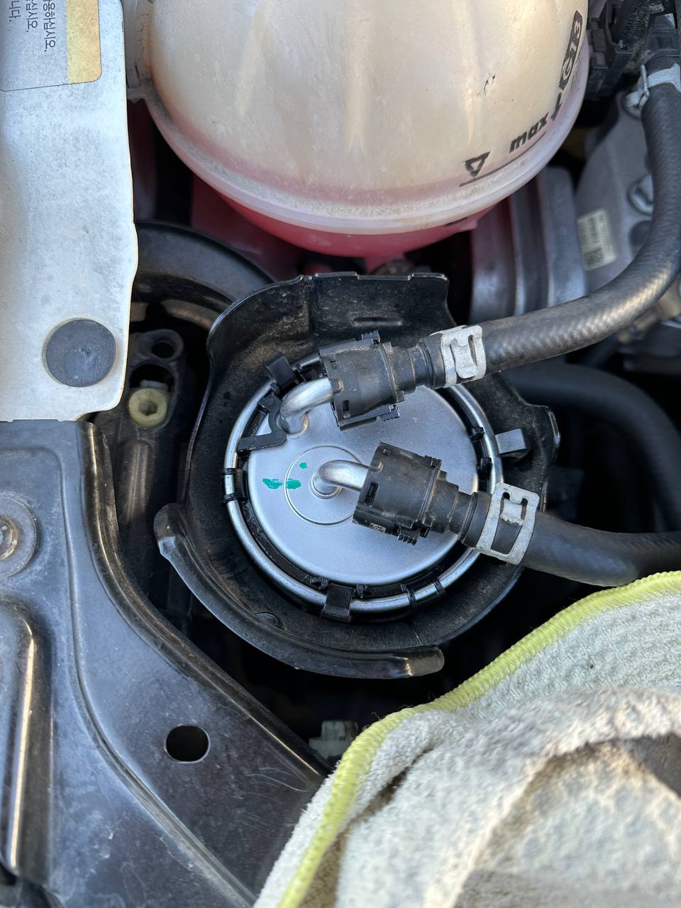 처음 연료 필터를 들어 올릴때 홈에 맞춰 잘 끼우고, 연료 호스를 잘 밀어 끼우면
