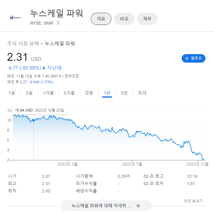 | 뉴스케일 첫 프로젝트 무산, SMR(소형원전) 회의론 부각될 것 (0) | 2023.11.14 |