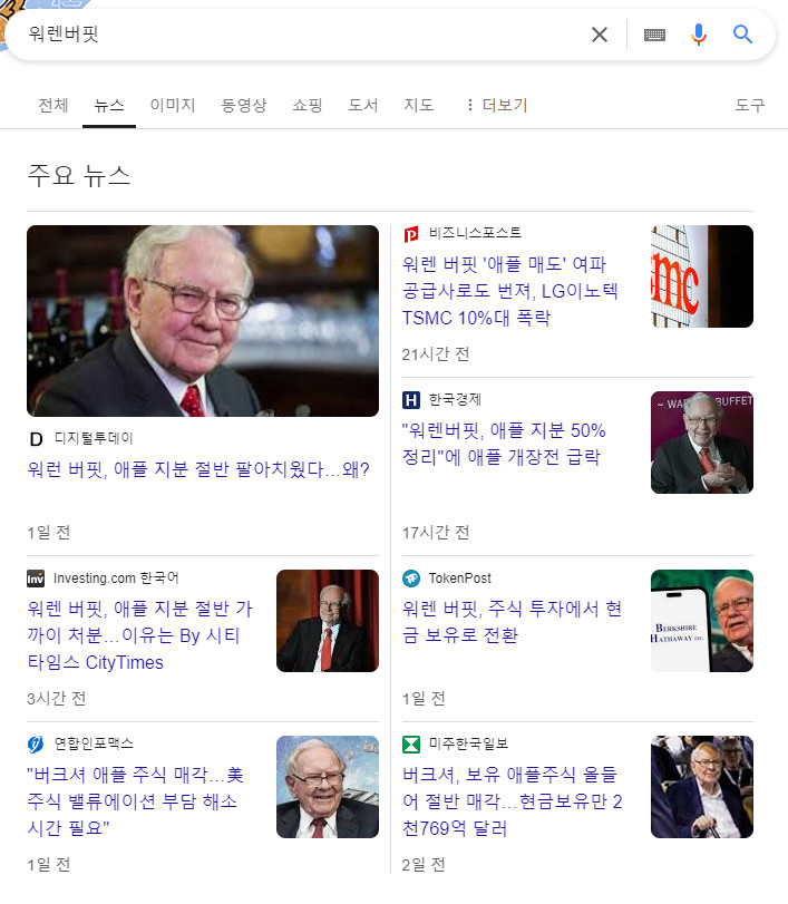- 2024.02.16 : 3년 만에 애플 매도한 버핏, 그래도 9억 주 보유(애플 주식 매각 이후에도 9억 5천만주를 보유중)