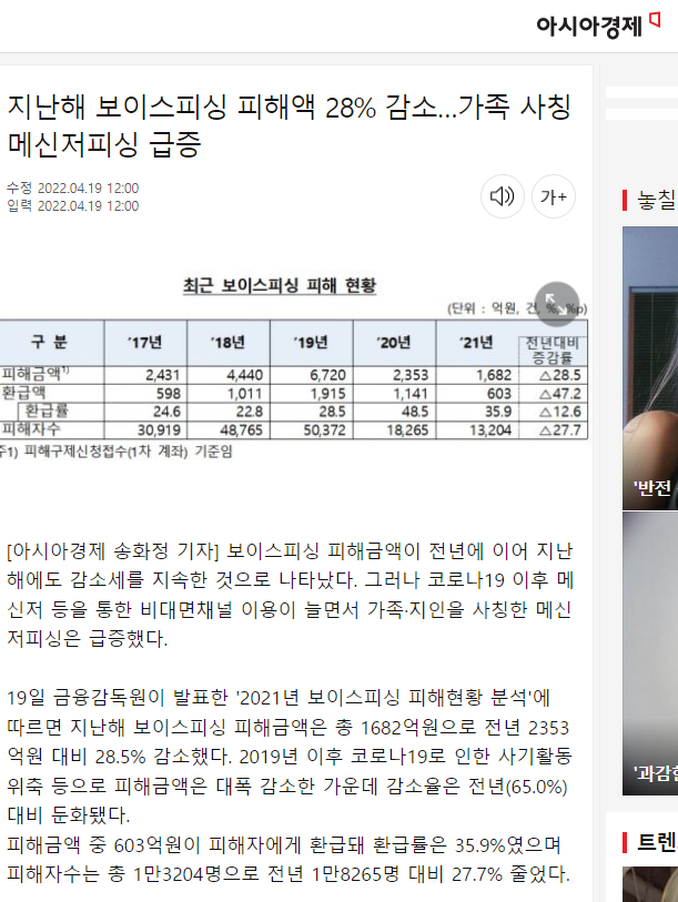 기사를 검색해보니 보이스 피싱 피해액이 진짜 상당하다.