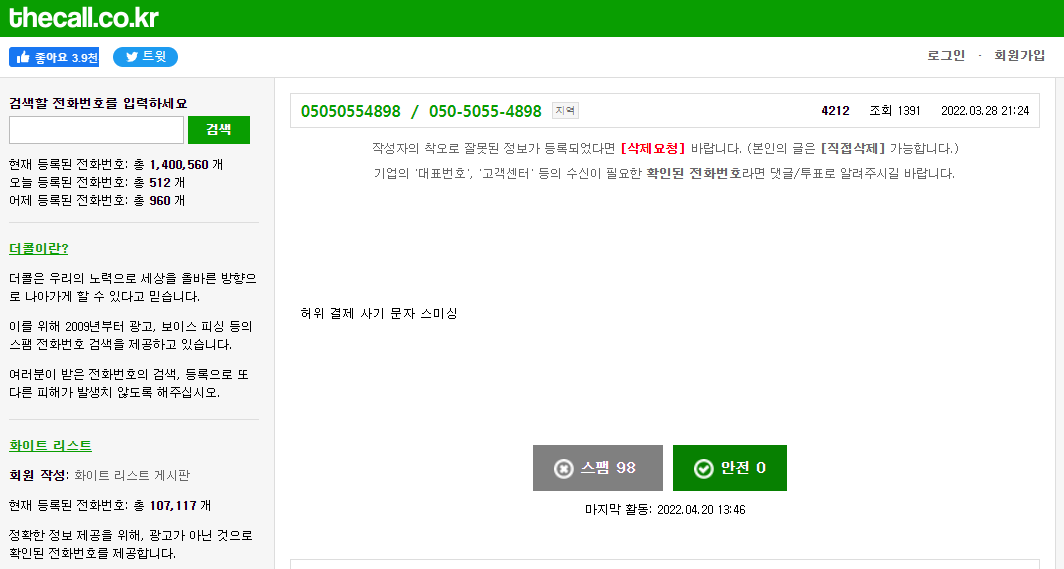 특히 링크에 취약한 안드로이드 사용자들은 더더욱 조심해야 할듯. 전화번호로 전화해서 물어본다는 생각 자체를 접는것이 맞지 않나 싶다.